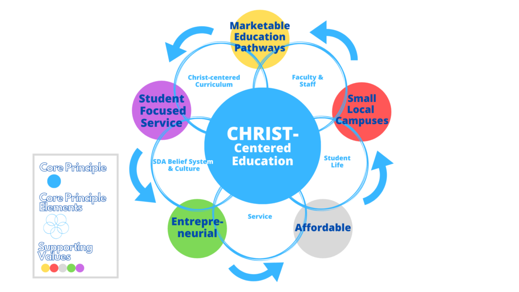 guide faculty, staff and students to become witnesses for Christ spreading His everlasting gospel to a needful world by practicing Christian management principles and being examples of Christ-like living, loving, teaching, healing and serving. Emulating Christ in business practices creates a workplace that respects each employee and student, builds trust, loves, encourages, and unleashes the creative talent and productivity in each person to strive for excellence and efficiency.